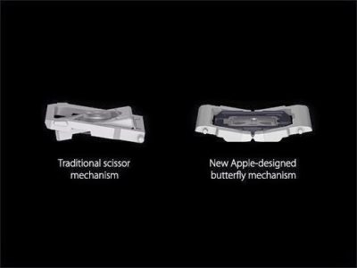 - أزرار لوحة المفاتيح في الماك بوك الجديد ، أكبر من السابق بنسبة 17 % و مزودة بتقنيات جديدة في عالم لوحات المفاتح ، منها الضغط المركزي على الأزرار لمضاعفة ثباثها و انارة LED في كل زر لتسهيل الاستعمال الليلي .